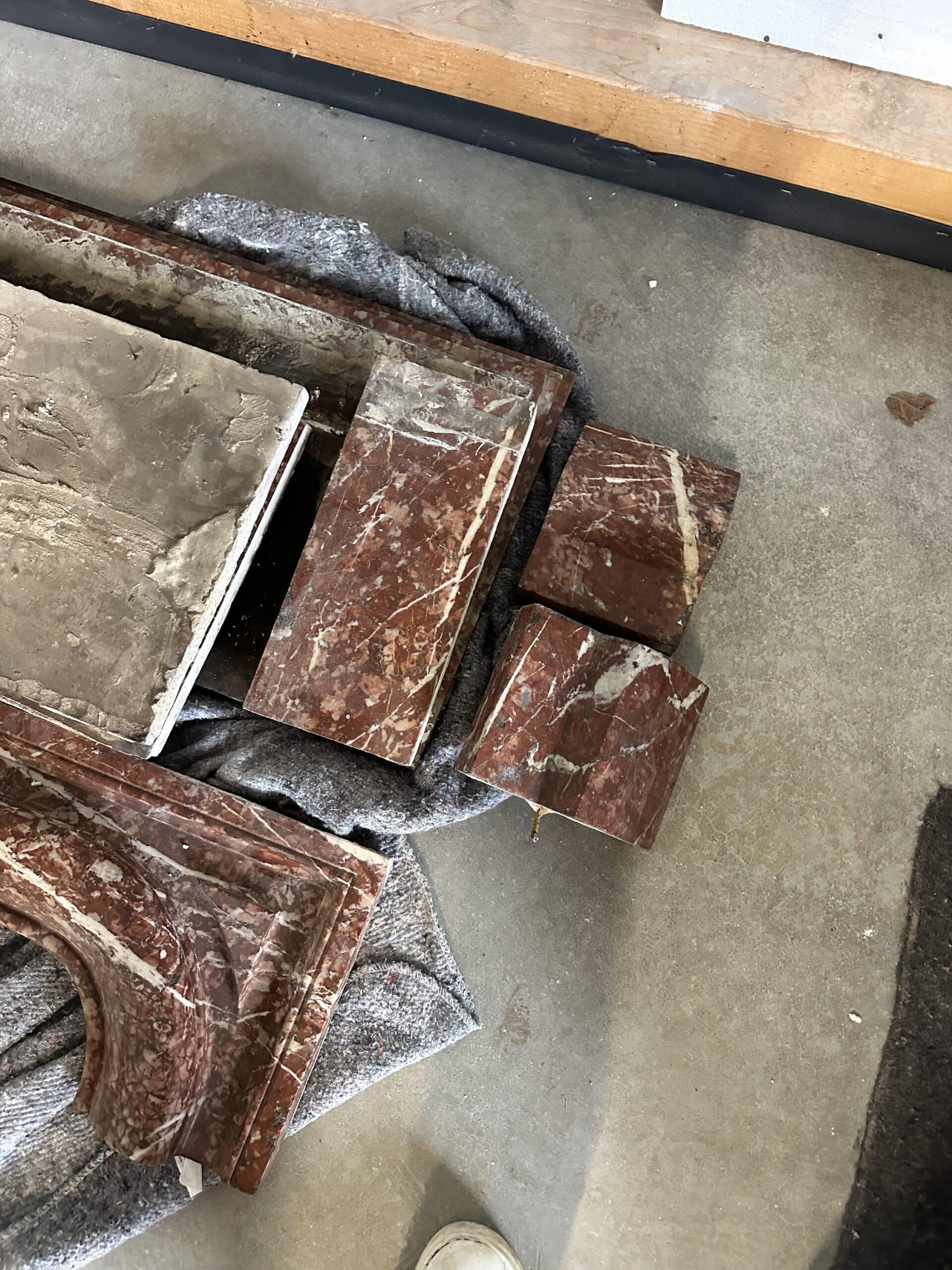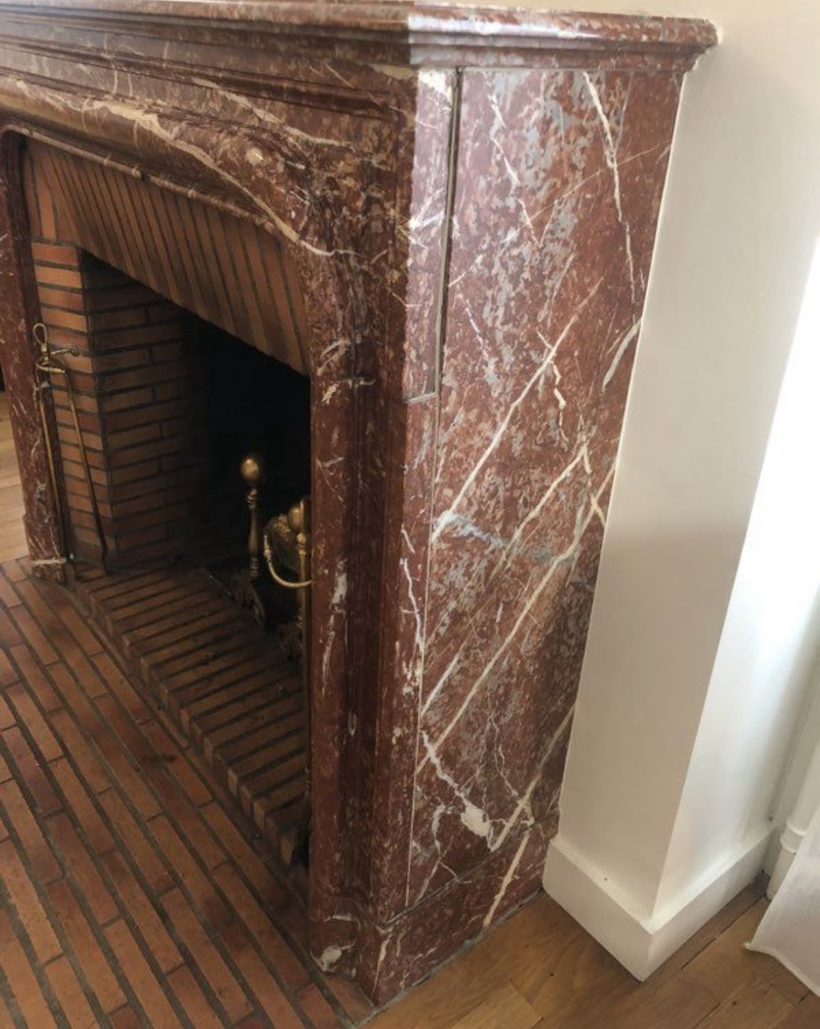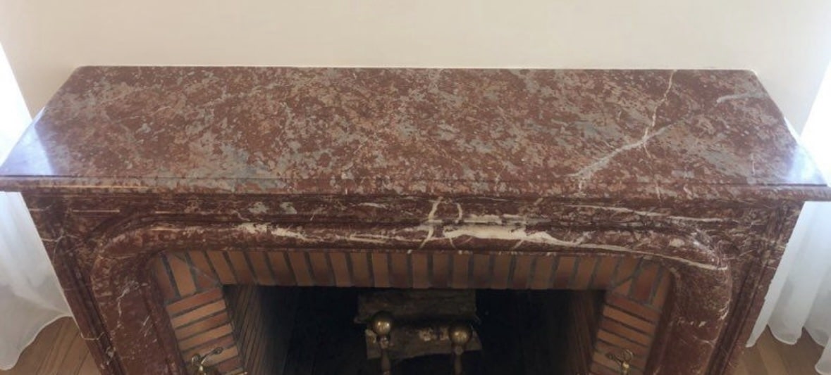 Cheminée de style Louis XIV en marbre rosé des Pyrénées circa 1880