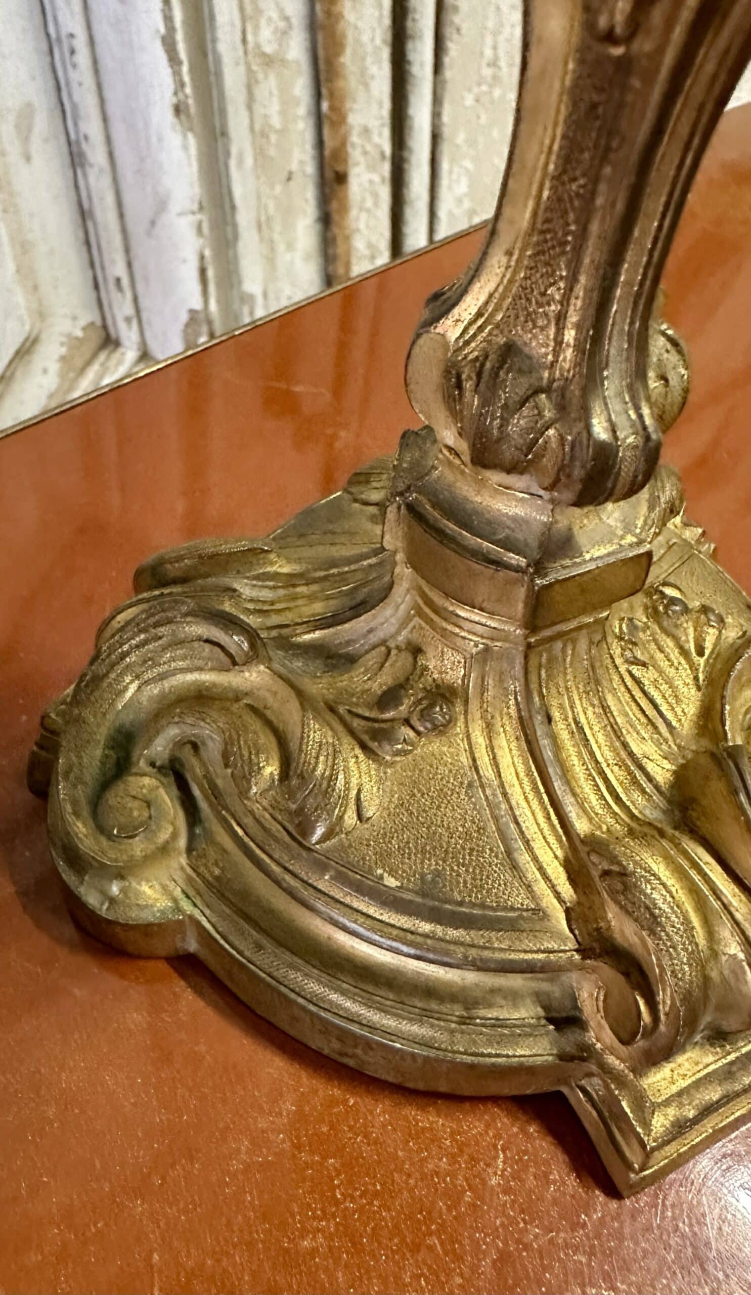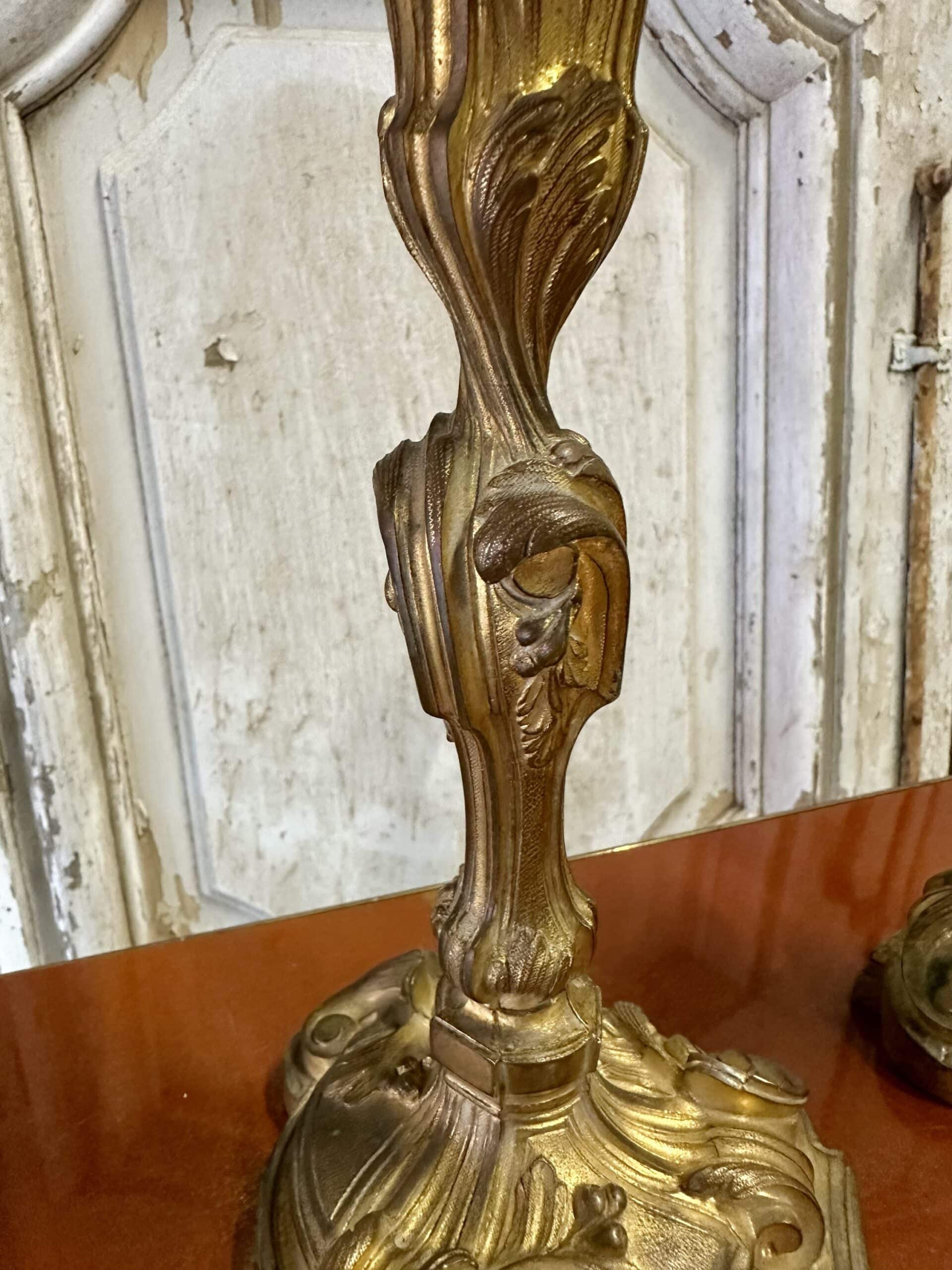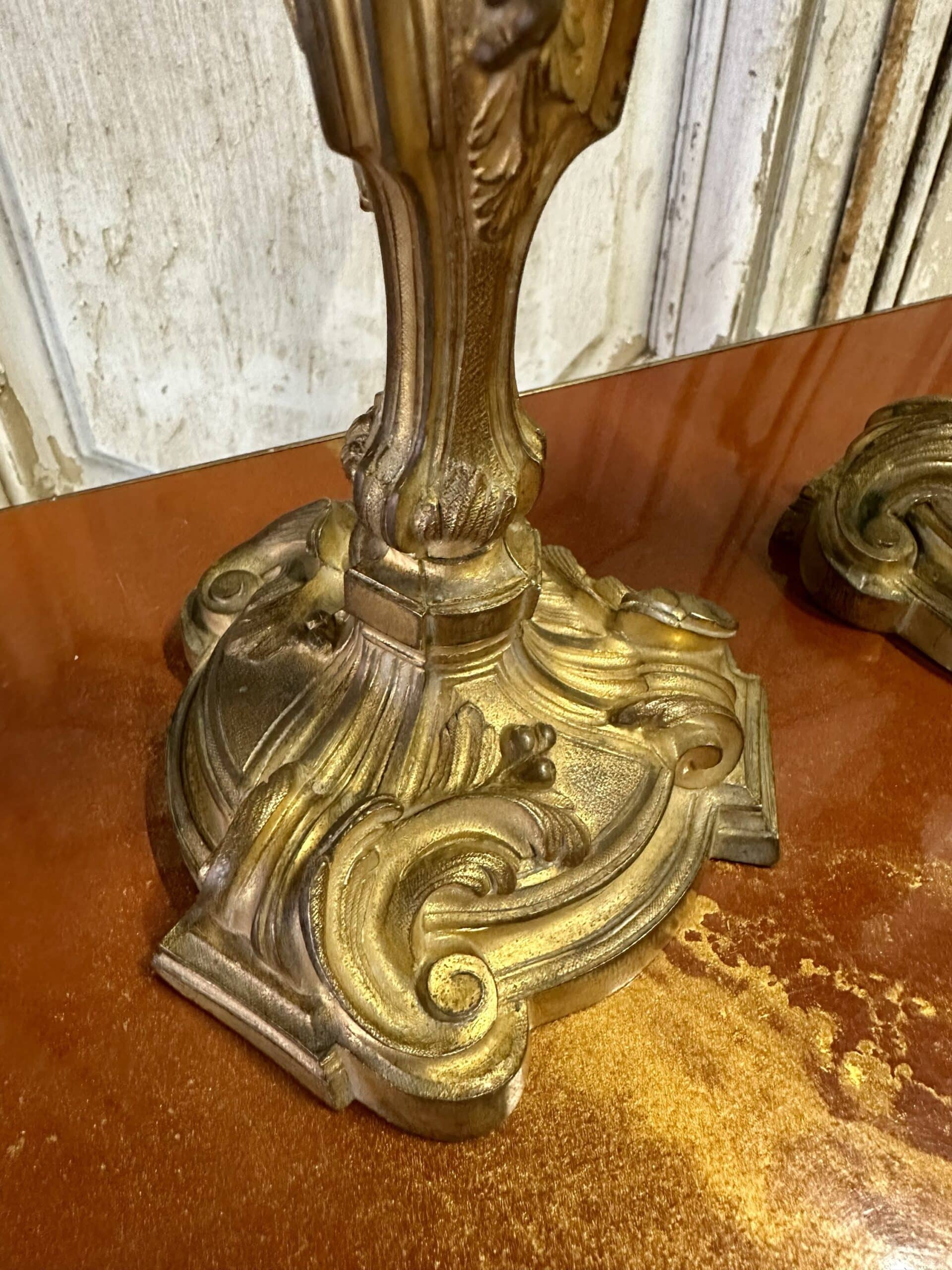 Paire de bougeoirs en bronze début 20e siècle style Louis XV rocaille