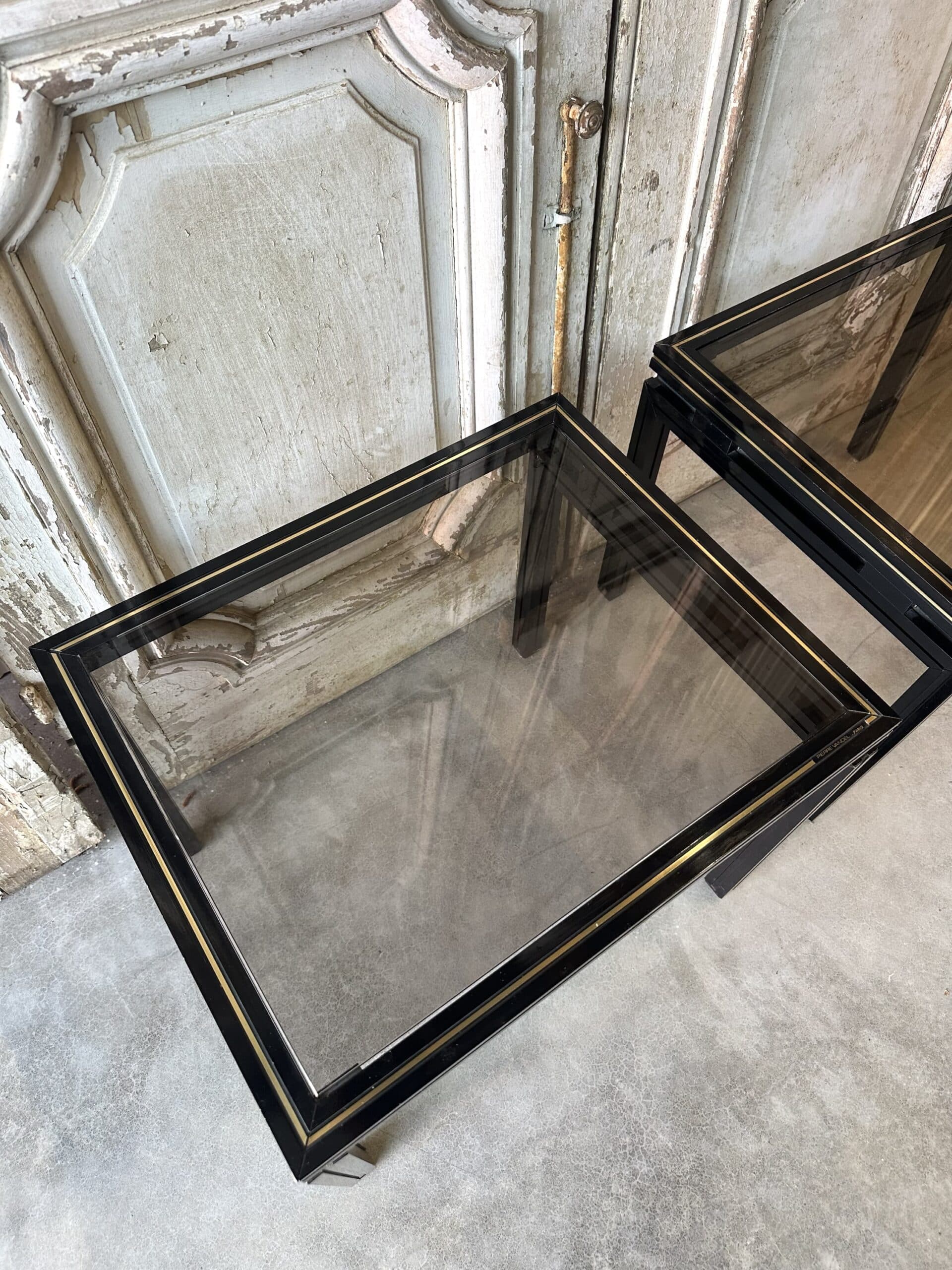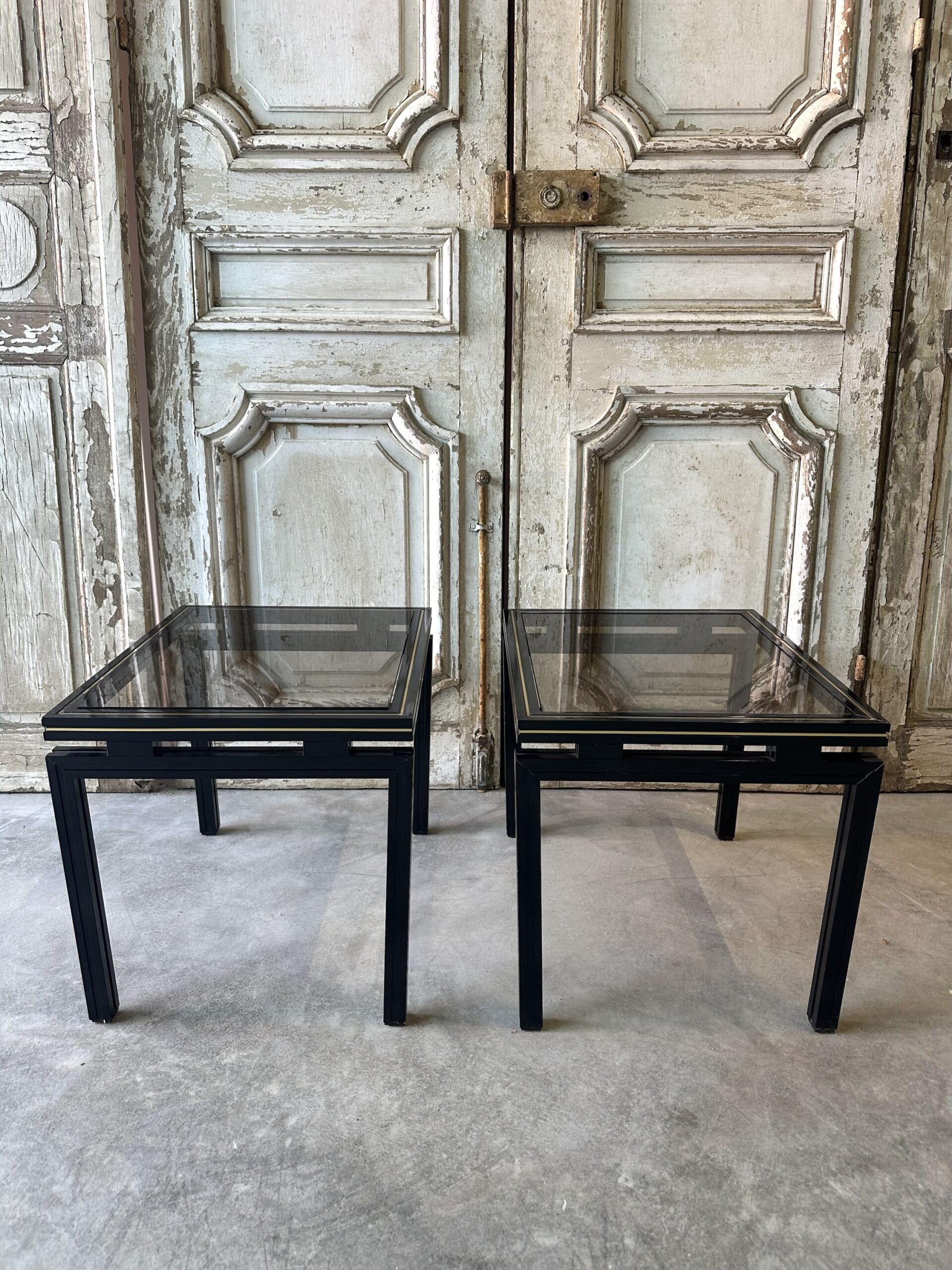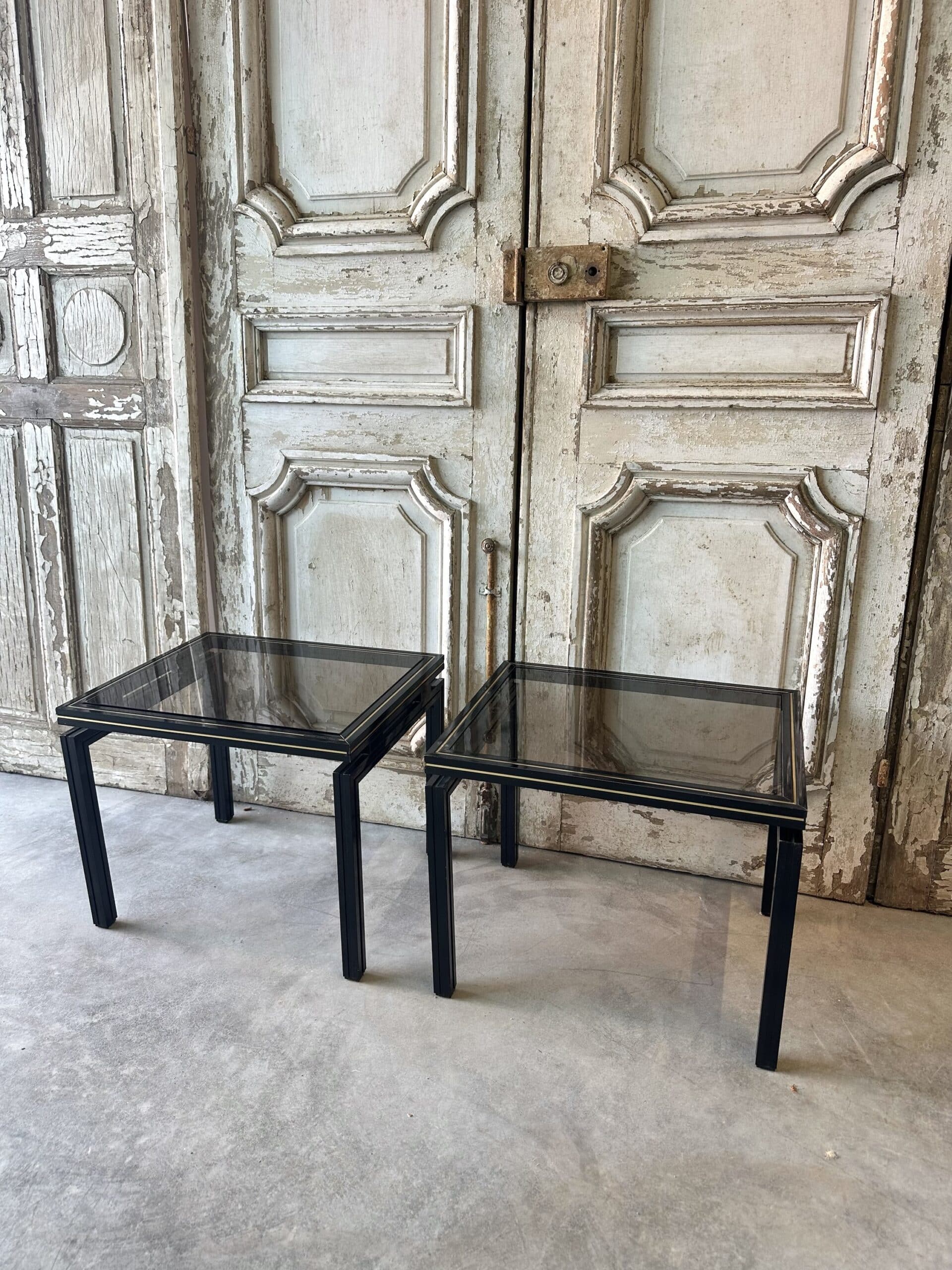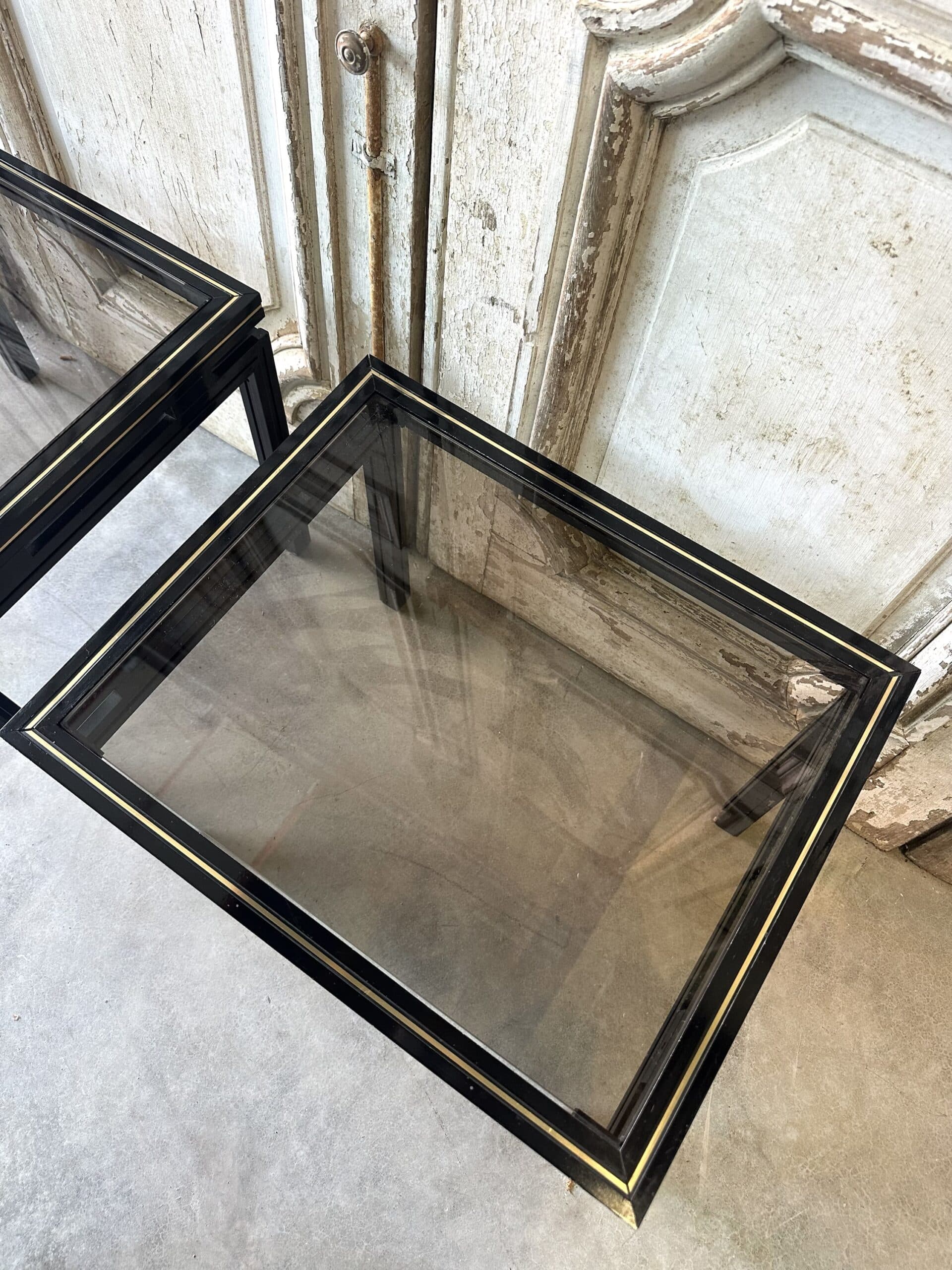 Paire de bouts de canapé Pierre Vandel noir époque 1970-80. Quelques retouches à la peinture. Bon état d’usage.