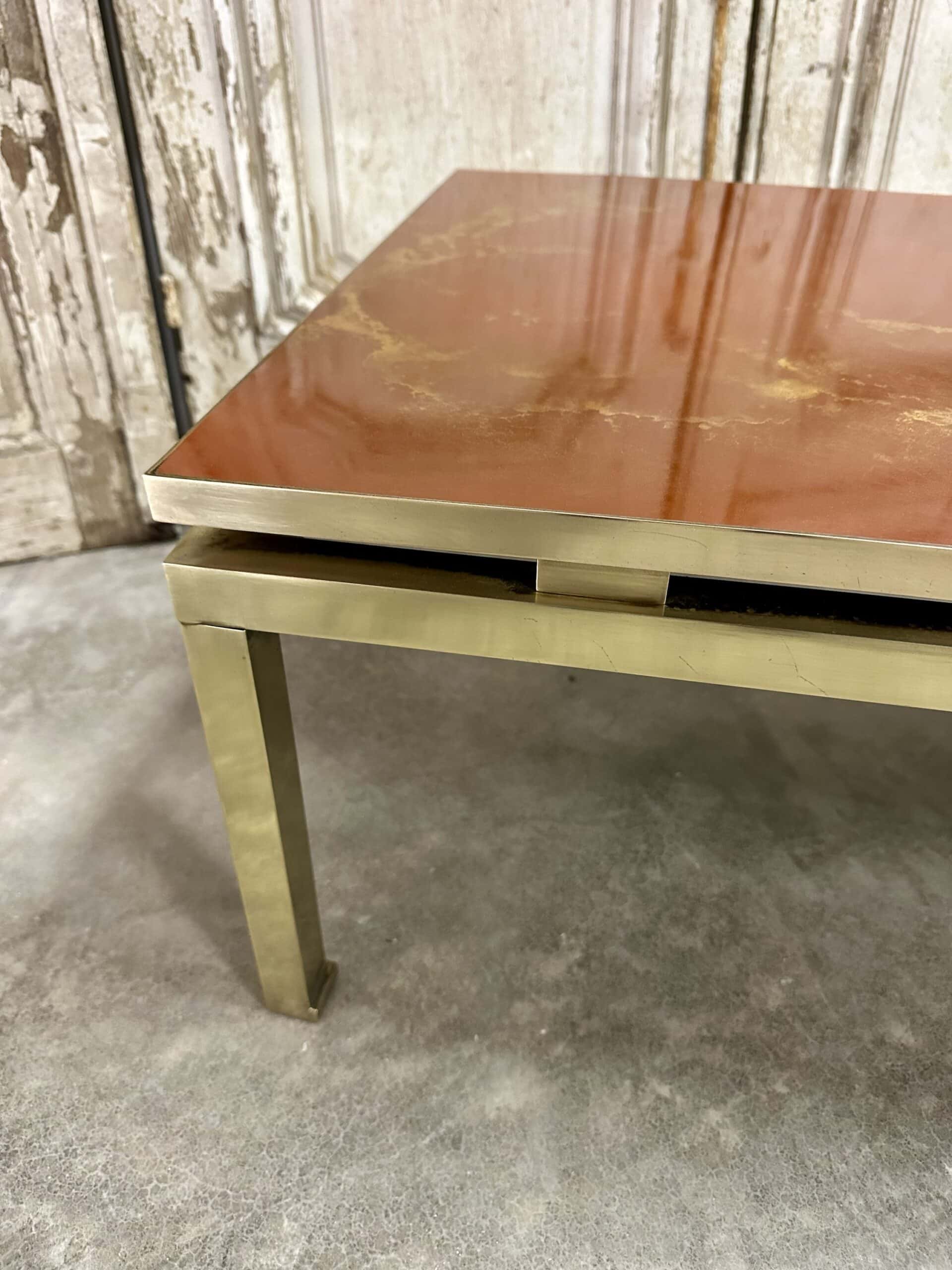 Table basse Guy Lefèvre pour Maison JANSEN plateau effet laque circa 1970