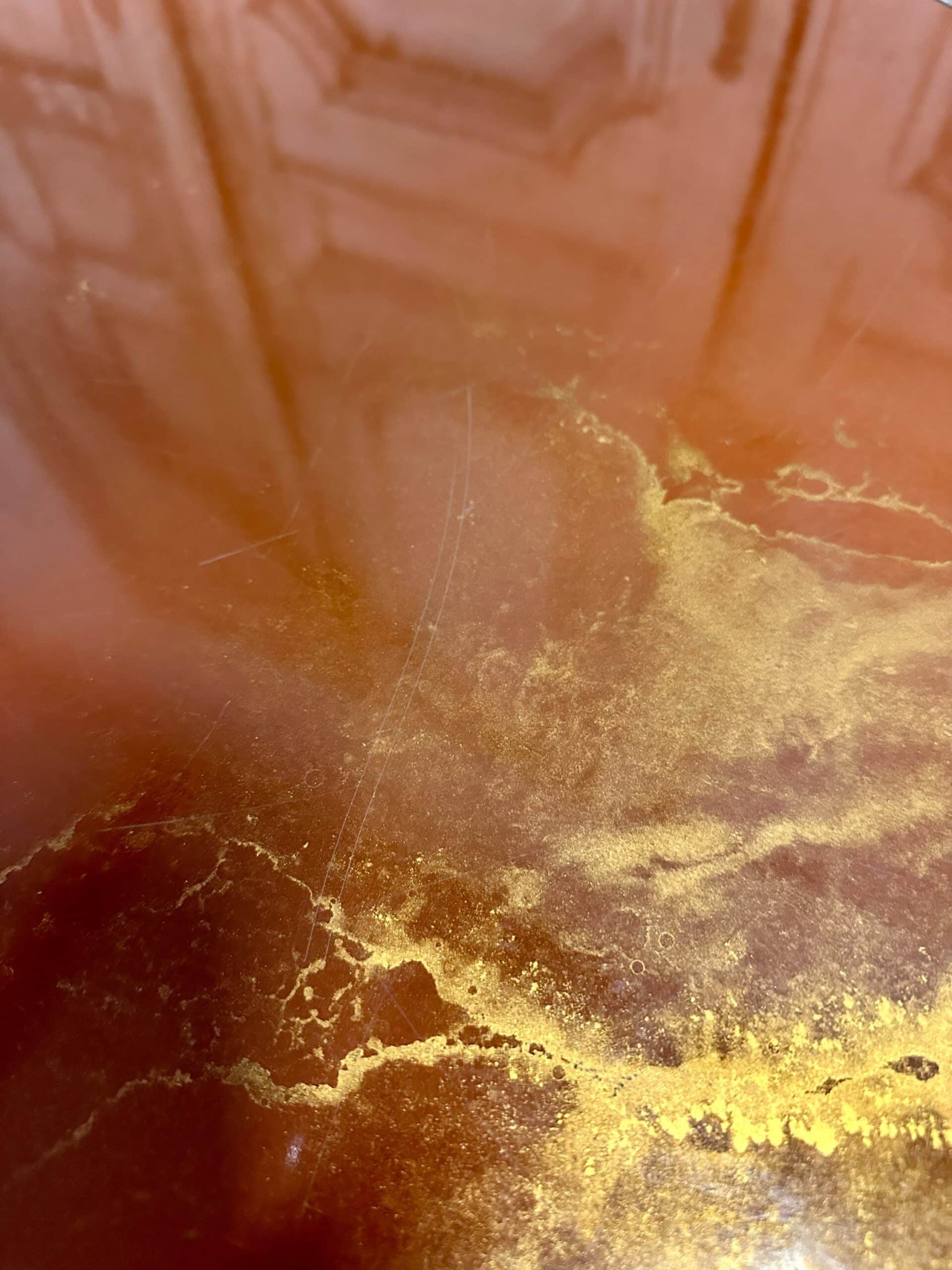 Table basse en laiton et plateau imitation laque attribuée à Guy Lefèvre pour Maison JANSEN circa 1970. Quelques oxydations entre le piétement et le plateau, un petit éclat au plateau, micro rayures d’usage sur le plateau.